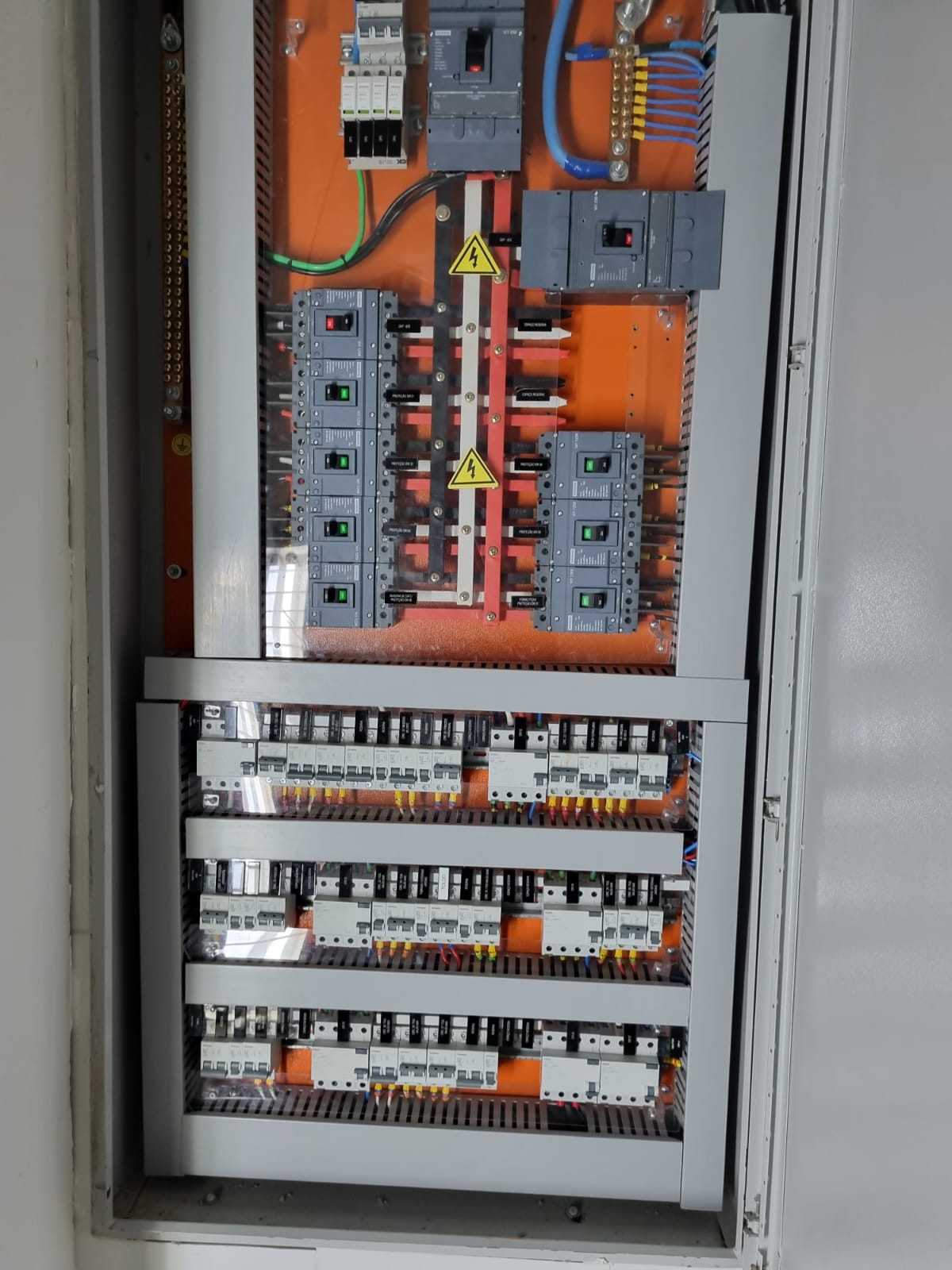 Hoje realizamos serviço desde a confecção de QDF (Quadros de Foça completo), adequação de disjuntores, lançamento dos cabos de diversas bitolas (2,5mm, 4, 6, 16, 25mm....), instalação de tomadas comuns e estabilizadas 127v e 220v, e até 380v, em paredes e móveis, instalação de luminárias, iluminação de emergência e detecção de incêndio e SPDA